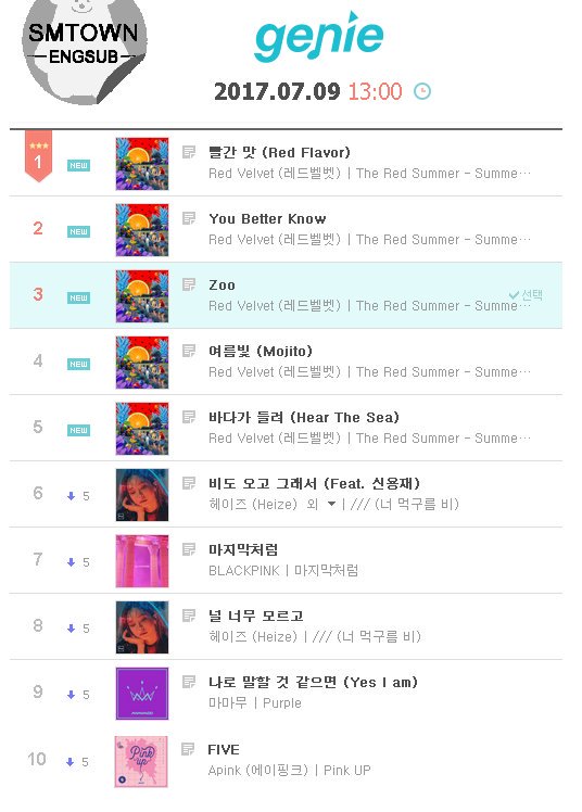 - Red Flavor se posicionó No.1 en MelOn realtime chart durante 17 días consecutivos.