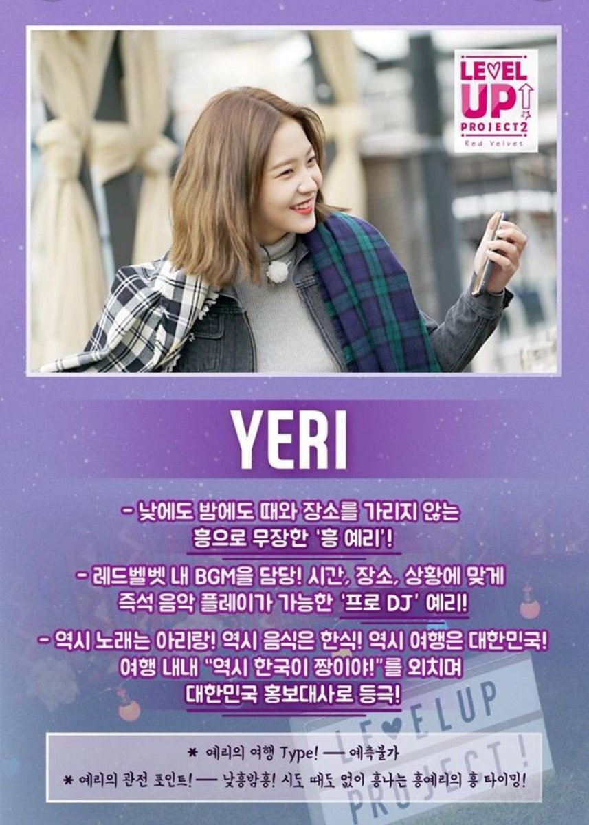 — «¡Arirang es la mejor canción!» «¡La comida coreana es la mejor comida!» «¡Corea es el mejor lugar para vacacionar!» En todo el viaje, Yeri dijo «¡Corea es lo mejor!» y se ganó el título de «Embajador honorario de Corea»*